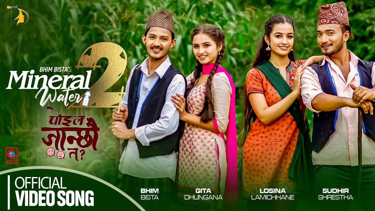 पोइला जान्छौ त: गत वर्षको ब्लक्ब्लस्टर गीत 'मिनिरल वाटर' को भाग २ 'पोइला जान्छौ त' पनि युट्युब ट्रेन्डिङमा छ l म्युजिक भिडियो ट्रेन्डिङको सत्रौँ स्थानमा रहेको छ l भिडियोलाई ३ लाक माथि दर्शकले हेरी सकेका छन् l गायक भीम विष्टको शब्द रचना र संगीतमा गीत बनेको छ l आवाजमा भिमलाई गायिका अस्मिता अधिकारीले साथ दिएकी छिन् l मौसम हिमालीको कोरीयोग्राफी र निर्देशन रहेको म्युजिक भिडियोको सम्पादन र छायाङ्कन पवन सुस्लिङले गरेका छन् l भीम विष्ट ,सुधीर श्रेष्ठ, गीता ढुंगाना र लोसिना लामिछाने भिडियोमा फिचर्ड छन् l इनाक्षी एन्टरटेन्मेन्ट युट्युब च्यानल बाट भिडियोलाई हेर्न सकिन्छ l